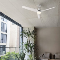 Brisa ist ein Deckenventilator, der mit Beleuchtung ausgestattet ist und sich durch 3 weiße ABS-Flügel auszeichnet. Es kann entweder über die Fernbedienung oder über einen Timer gesteuert werden. Ausgestattet mit einem 30-W-Gleichstrommotor bietet er 6 verschiedene Geschwindigkeiten (von 109 bis 214 U/min, mit einem Geräuschpegel von 32,3 bis 40,5 dB). Mit einem Luftstrom von 189 m³/min eignet er sich besonders für Räume zwischen 13 und 18 m² Größe. Es verfügt auch über einen Winter-/Sommermodus, mit dem Sie die Richtung, in die die Klingen gedreht werden, umkehren können. Das eingebaute 15W LED-Modul strahlt 1140 Lumen warmes Licht bei 3000K ab.