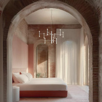 Perla ist ein Kronleuchter mit 12 Armen, er umfasst 3 Abschnitte, die in drei verschiedenen Konfigurationen verwendet werden können; einer mit 6 Armen und zwei mit 3 Armen, die dem Kronleuchter eine einzigartige Flexibilität verleihen. Dank einer Gewindescheibe können die Enden des Zentralkörpers zudem durch intuitives Verschrauben verbunden werden. Die Besonderheit von Perla liegt in der Möglichkeit, die Positionierung der Abschnitte zu wählen, um Ihren Kronleuchter zu personalisieren. In jedem Fall endet jeder Arm mit einem Längsstab, der mit zwei Leuchten ausgestattet ist, um eine harmonische Lichtverteilung in den Räumen zu gewährleisten. Was die Materialien betrifft, ist Perla in verschiedenen edlen Ausführungen erhältlich: Die zentrale Struktur kann in Schwarz oder Weiß geknittert gewählt werden, während die Arme und Endstangen jeweils in gebürstetem Gold oder gebürstetem schwarzem Nickel individuell gestaltet werden können. Ein raffinierter, vielseitiger und elegant aussehender Kronleuchter, der sich für jede Umgebung eignet.