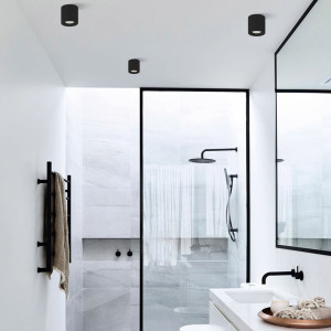 • Materialauswahl: Satin- oder Opalglas ist ideal für das Badezimmer. Denken Sie auch an eine Lampe mit Schirm, deren Licht auf den Spiegel gerichtet ist.