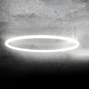 Alphabet of Light is an innovative lighting system designed by the famous architecture studio BIG for Artemide, which redefines the concept of light as an element of communication and design. This modular system is based on essential geometric shapes, such as lines and circles, which can be freely combined to create customizable writings, graphic signs and light structures. Its versatility allows it to be easily adapted to different architectural contexts, transforming walls and ceilings into communicative and expressive surfaces. The distinctive element of Alphabet of Light is its ability to integrate aesthetics and functionality in a single system. Thanks to careful design, the system guarantees continuous, uniform and glare-free light, helping to create comfortable and welcoming environments. The result is lighting that enhances the space without ever being invasive, offering solutions suitable for both professional and residential environments. Alphabet of Light is EPD certified, a guarantee of its low environmental impact and commitment to sustainability. The materials used, such as aluminum and opal technopolymer, ensure resistance and durability over time, while maintaining a refined and contemporary design. The system offers a color temperature of 3000K, ideal for creating warm and relaxing atmospheres, and a high color rendering index (CRI 90), which reproduces colors in a natural and realistic way. With a power of 156W and a luminous flux of 20,953 lumens, Alphabet of Light guarantees intense and uniform lighting even in large and complex spaces. The innovative optoelectronic technology developed by Artemide ensures high performance and maximum energy efficiency. Furthermore, the dimmable system, manageable via app, Push or DALI, allows you to easily adjust the light intensity to adapt it to different needs, creating atmospheres tailored to each context. Alphabet of Light is not just a lamp, but a lighting solution capable of combining minimalist design, technological innovation and high functionality. Thanks to its versatility and advanced technical features, it represents an ideal choice for showrooms, offices, commercial spaces and modern domestic environments that require elegant and high-performance lighting.