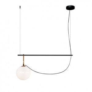 Each lamp consists of a luminous sphere and a brass ring that allows the diffuser to move along a metal axis. Table lamps and chandeliers have been conceived with a view to freedom of movement, to express a new concept of avant-garde lighting.
