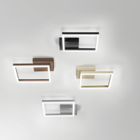 Aruba is a modern ceiling lamp with basic and elegant lines. The square diffuser is made of extra-clear glass and has an asymmetrical edge with sand-blasted finish. The central body of the lamp is in metal with galvanic finishes in copper, gold, chrome or embossed white. The ceiling rose is in white painted metal. The chandelier produces diffused light, ensuring optimal illumination of spaces underneath. The light source is an LED strip. Available in two sizes.