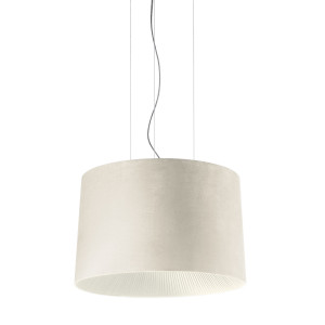Skin&Velvet is a collection of modern lamps featuring round shapes and classic materials such as metal, fabric and eco-leather. The chandeliers of this collection can be inserted into any living space, dining room or bedroom, as well as in commercial environments such as hotels, offices and restaurants. Skin is available in chandelier and ceiling lamp versions, made of metal with eco-leather lampshade, available in different sizes and in various colour finishes. Velvet, on the other hand, features a cylindrical body in fireproof fabric with an elegant pleated diffuser. Both suspensions are equipped with dimmable LED light with a screw attachment. With a modern but not too elaborate style, this collection provides the maximum light output, creating different atmospheres according to your needs, for a tasteful home