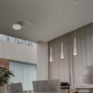 Iconic is a family of contemporary lamps that mix geometric balance and essential figures. Available both as a table lamp, floor lamp and as a suspension, Iconic differs from any other light body for its structure with three different geometries: a cylinder, a cone and a luminous sphere. Therefore it not only diffuses the lighting but also becomes a design element to keep in your own homes. These contemporary chandeliers are ideal for areas such as the bedroom or your own living room. The table lamp version is distinguished by the possibility of rotating the diffuser, directing the light beam in an arbitrary way. Likewise, the Iconic floor lamp has two light beams that can be directed at will. Iconic suspension lamp, on the other hand, is available with a different number of lighting sources: in fact it is available with 3, 5, 6, 8 LED lights, which you can choose according to the size of your home. These contemporary chandeliers are available in different finishes: white, black, steel / black and brass / black.