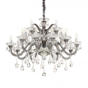If you are looking for a luxurious, very scenic chandelier that can give charm to the room, the Ideal Lux chandeliers will recreate this ancient magic. Once, they were a privilege only of nobility, but nowadays they have become available to everyone. The style of a classic chandelier is usually a candlestick with drop-shaped elements and flame-shaped light bulbs to enhance the antiquity of the chandelier. Examples of this type are the Negrasco, Colossal, Empire, Liberty and Gioconda pendant lamps. If your dining room is large and characterised by exceptionally high ceilings with precious pieces of furniture, such as a solid wood table and precious antique porcelain exposed in the sideboard, the most typical furnishing accessory you can not miss is a classic chandelier of large dimensions with drop-shaped pendants. For those who want to dare, you can choose the models lacquered in gold or silver to recall the glories of the eighteenth-century buildings. A candlestick chandelier, as well as classic wall appliques, also fit well with contemporary furnishings to give a classy tone to the dining room or living room. Discover all our proposals for classic chandeliers and choose the one that's right for you!