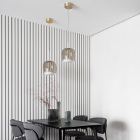 Jube table lamp with a slightly retro style. Metal structure with satin brass finish and single blown glass diffuser available in various finishes. This lamp is ideal for lighting living rooms and bedrooms with a modern style but with a nod to the past. Jube offers a full collection for the complete lighting of your home; in fact the table lamp will be perfect when combined with wall and pendant lamps. The Jube table lamp is available in two sizes to meet every need.