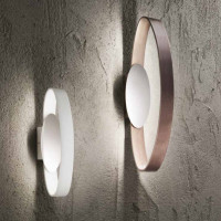 LED lamp light, for big energy savings. The curved shape of the lamp, thanks to the transparency of the upper and lower glass, allows warm and diffuse lighting (double light emission). The applique is made of pinted aluminium.
