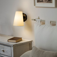 Modern wall light, made of metal with fabric lampshade. Equipped with double switch, LED reader, and driver, it's available in white and matt nickel finitures.
