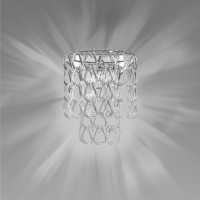 Minigiogali is a table lamp with a glam and luxury style with a particular decorative system. In fact it is based on an element in the shape of a crystal hook available in numerous finishes, from transparent to black and from amber to smoky or bronze, to adapt to any living environment. The Minigiogali table lamp is the reduced version of Giogali that allows the use of the decorative element in smaller, standard or custom-made installations. The metal parts can have a bronze or chrome finish. This table lamp is ideal for lighting the living room and as a bedside lamp in the bedroom.