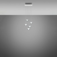 Multispot Polair is a chandelier with refined and simple lines. Composed of a conical diffuser in transparent glass and sandblasted at the bottom with aluminium frame available in black or copper colour. Multispot as suggested by the name can be installed individually or as a multiple combination, either on a circular or rectangular rosette, adapting to your various types of furniture. This pendant lamp is suitable for any environment and for custom projects. We recommend it for lighting living rooms or dining rooms in multiple combinations, or as an abat-jour in the case of single pendant. Available with LED lighting for significant energy savings.