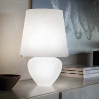 Naxos is a design table lamp that enhances the quality of white satin glass. This table lamp exploits the advantage of having two light sources represented by the base and the lampshade. Thanks to the satin-finished work Naxos allows to filter the light making it softer and softer. This table lamp available in four sizes can be inserted as a light source and as a furnishing accessory in living rooms and as a bedside lamp for modern style bedrooms.