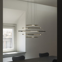 Drop is a design chandelier characterized by a very thin metal structure. The light is distributed through the concentric circles that make up the lamp. It is a suspension lamp of important dimensions, the result of sophisticated lighting technology, ideal to be installed on a table in the living room. It has high efficiency LED light sources.