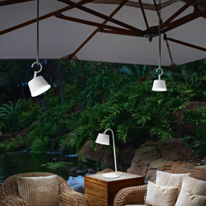 Among the most interesting models on the market, we find Dina+ by Rotaliana and Fleur by Foscarini. Dina+ is a portable wireless table lamp, equipped with a lithium battery that offers up to 30 hours of battery life. It is equipped with an integrated touch dimmer, which allows you to adjust the intensity of the light with a simple touch, while the aluminum structure and the interchangeable lampshade in transparent or opaline white polycarbonate make it a versatile design element.
