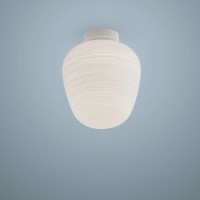 Rituals is a designer ceiling lamp that is distinguished by the particular working of the diffuser made of blown satin glass and engraved with irregular lines to restore a chalky effect. The ceiling mount is made of epoxy powder-coated metal. The shape of Rituals is reminiscent of oriental rice lanterns, resulting in a pleasant presence that produces a diffused and intimate luminosity. Available in three different shapes and sizes, it is suited to numerous domestic settings furnished in modern or contemporary style.
