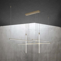 Elia is a modern chandelier with a minimalist and essential design. It is characterized by a metal structure with a round canopy and six long-limbed acrylic diffusers. It emits a dimmable but non-invasive direct light that ensures great visual comfort. It is ideal for any installation. Available in gold and matt black finishes. Available in various models and sizes.