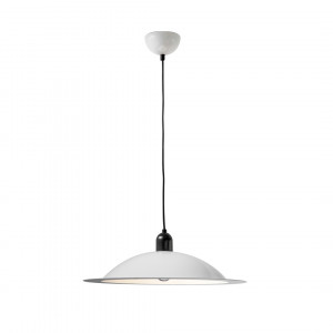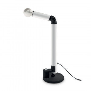 Lampiatta is both a chandelier and a table lamp. It has an essential design with a lampshade similar to an "English helmet". The table version can also be installed on the wall and has a structure with counterweight and slits placed at different heights. These slots allow the insertion of the parabola and to direct the light source both directly and indirectly.