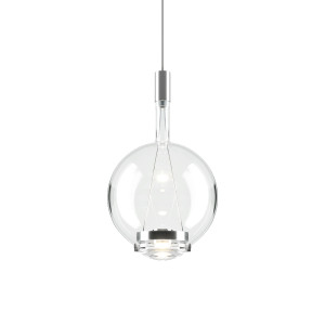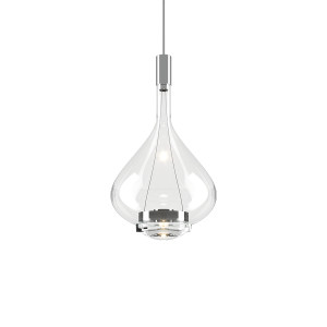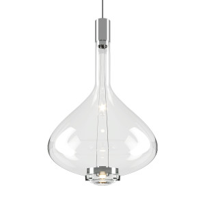Lodes - Sky-FallTimeless refinement, innovation and beauty. These are the characteristics that most represent Sky-Fall, a chandelier with a pure and strong shape, attributable to that of a decanter of fine wines. Hand-blown glass processing is combined with the progress of new LED technologies. Available in different finishes, chrome, transparent, rose gold and polished copper Sky-Fall can be installed individually or as a combination of multiple shapes and colors with a visual effect that will leave you breathless. The two LED light sources provide direct and indirect light, the vertical filaments are visible and the lens placed in the lower part of the lamp amplifies the light beam making it wide and intense. Sky-Fall is ideal for lighting both various rooms in the home, such as living rooms and dining rooms and for contract spaces such as sophisticated style hotels. Request information