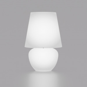 Vistosi - NaxosNaxos combines design lamps in satin white glass, proposed in the chandelier, table lamp and floor lamp version. The table lamp has the lampshade of a classic bedside lamp with a wide and rounded base. Both both lampshade and base light up. The satin-finished work of the glass makes the light emission of soft and smooth. Available in several sizes, it can be used both in the bedroom as a bedside lamp and in the living room for the lighting of this environment. The suspension lamp version is available in combination with the table lamp. The Naxos design chandelier has the same style as the table version. Equipped with a wide cylindrical diffuser thanks to which the light diffuses genially and uniformly throughout the room. The collection is completed by the Naxos floor lamp: a floor lamp composed of white glass shade with round base and metal stem and satin nickel finish. It can be used to complement the lighting of living rooms and bedrooms furnished in a classic modern style. Request information