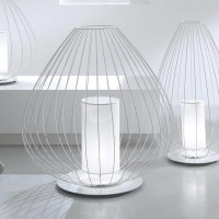 Cell est un lampadaire caractérisé par une forme de lanterne chinoise avec une structure en cage ouverte qui permet à la lumière de se diffuser délicatement. Le fil métallique blanc ou bronze, résistant à l'humidité, contribue à créer un effet éthéré et lumineux. Proposé en version intérieure et extérieure. L'abat-jour de la version indoor est en lin, ce qui permet à la lumière de filtrer de manière douce et romantique. Pour la version extérieure, on utilise cependant du plexiglas opalescent, qui résiste aux intempéries tout en conservant un aspect brillant et délicat. Pour compléter le design, un pompon en soie blanche ou noire est ajouté dans la version bronze, donnant une touche élégante et raffinée. La lampe Cell est disponible en deux formes, une plus élancée et verticale et une plus arrondie et plus large. Les deux formes sont disponibles en deux tailles, pour s'adapter aux différents besoins d'espace.