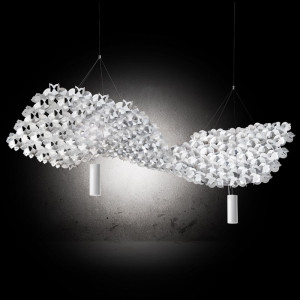Valeria Pantone e Dennis Pavoncello sono una coppia di giovani designer italiani che esprimono la loro arte attraverso un linguaggio creativo dinamico fondato sulla sistematica esplorazione della materia prima. Pantone, specializzata in Arti Visive e Pavoncello invece in Interior Design, prediligono la lavorazione e progettazione con elementi di recupero. Sfidano i limiti tecnici delle lavorazioni tradizionali cosicché il materiale stesso racconti la sua storia e che suggerisca il design dell'oggetto nella sua forma più naturale e pura. Lei, più attenta alla comunicazione di emozioni percettive ed ancestrali e lui maggiormente attento alla manipolazione dei materiali, hanno creato una combinazione d'equilibrio e di sinergia artistica, portando design, innovazione ed armonia a tutti i loro progetti. Queste visioni e percorsi di studi differenti dei due hanno portato alla realizzazione di Dimple, la prima collezione di lampade per SLAMP. Questo corpo d'illuminazione è stato creato con una tecnica di modellazione a freddo che spezza la linearità della forma.