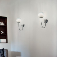 Puppet è una lampada da tavolo moderna. Questa lampada da parete è composta da una base dalla quale parte uno stelo che serve da appoggio per il diffusore, il tutto in metallo con finiture cromo e nere. Il diffusore invece, è realizzato in vetro soffiato sfumato e rigato irregolarmente così da poter ottenere dei giochi di luce particolari. Il diffusore può essere bianco sfumato, color cristallo, fumè oppure ambrato trasparente. Puppet è una lampada da tavolo ideale per l'illuminazione di soggiorni o camere da letto dallo stile moderno e ricercato.